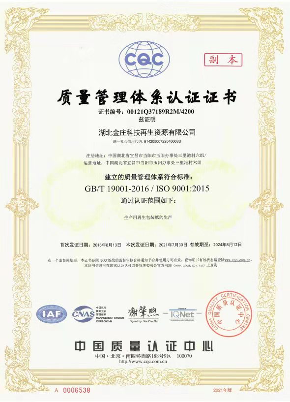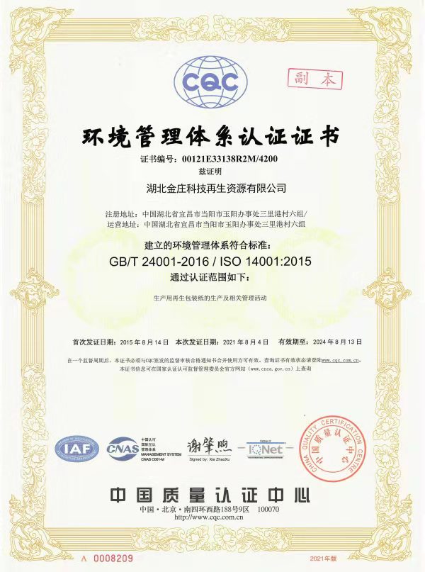 湖北金莊科技再生資源有限公司是以生產再生包裝紙和為工業(yè)園區(qū)集中供熱的資源綜合利用加工服務型企業(yè)。公司位于當陽市金橋工業(yè)園,成立于2000年,注冊資本15486.72萬元,占地面積近400畝,現(xiàn)有員工500余人。 自成立以來,公司始終堅持“誠信、創(chuàng)新、共贏”的經(jīng)營理念,努力踐行“資源再生綜合利用,堅持綠色能源可持續(xù)發(fā)展,以為社會提供綠色可持續(xù)穩(wěn)定適用的產品為己任”的經(jīng)營方針。